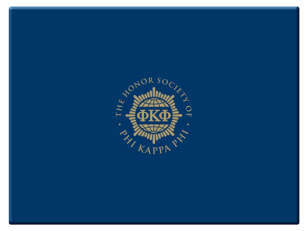 Protect and present your certificates in PKP style. These elegant navy holders feature the official gold-foil Phi Kappa Phi Seal and fit standard 8.5" x 11" documents. Size: 9" x 12". Sold in packs of 50.